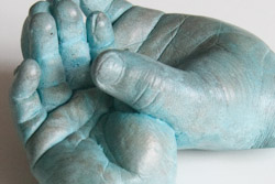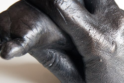 The final casts are made of bonded metal, this means that they contain 50% metal in the form of a metal powder which is bonded in a polymer plaster. This makes the casts fairly robust and gives them a bronze or silver like finish.